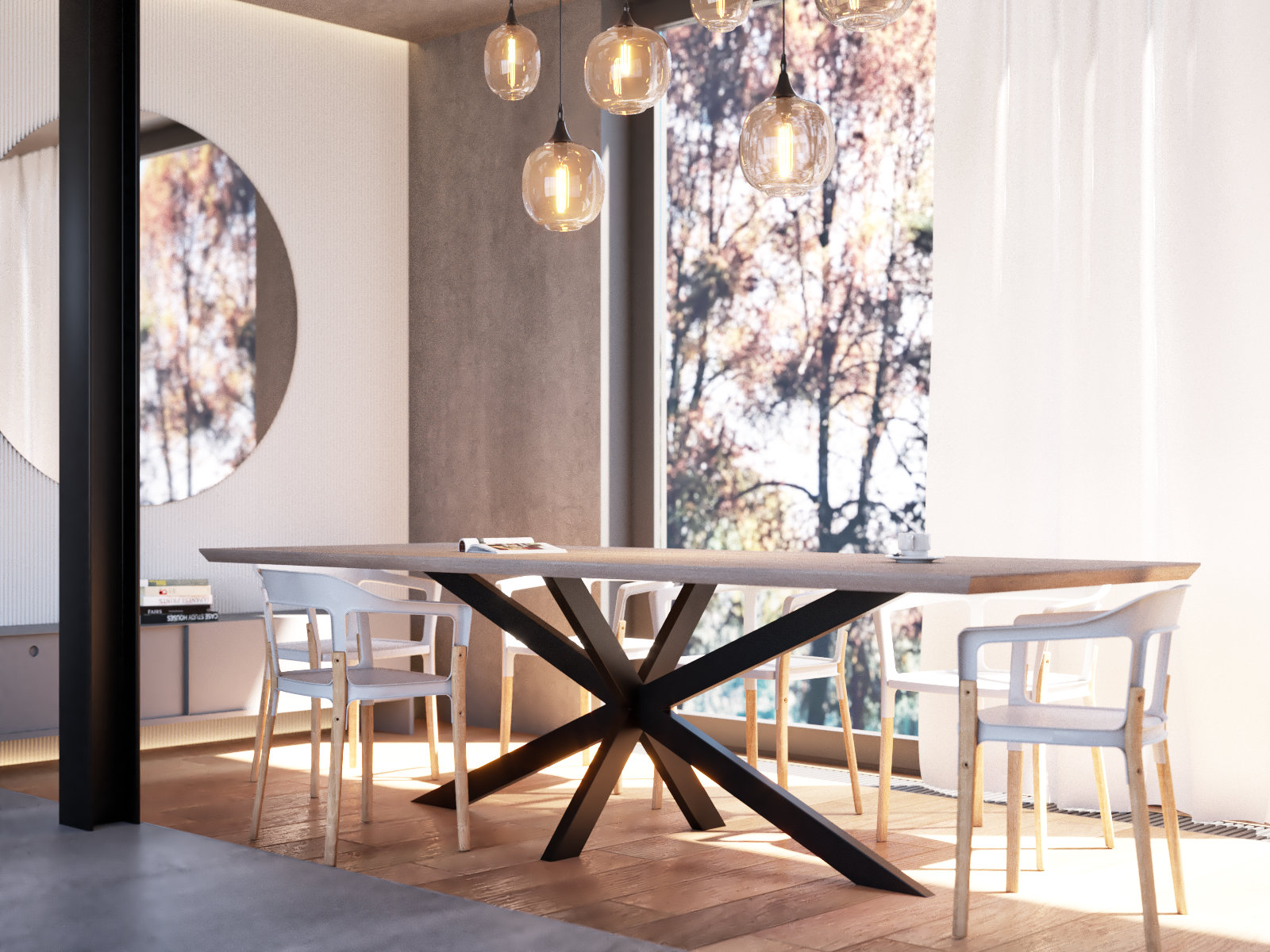 - Utilizare versatilă. Datorită faptului că se potrivește pentru diferite dimensiuni de blat, o poți folosi atât ca picior pentru o masă mare în sufragerie, cât și pentru o masă de conferință în biroul tău.