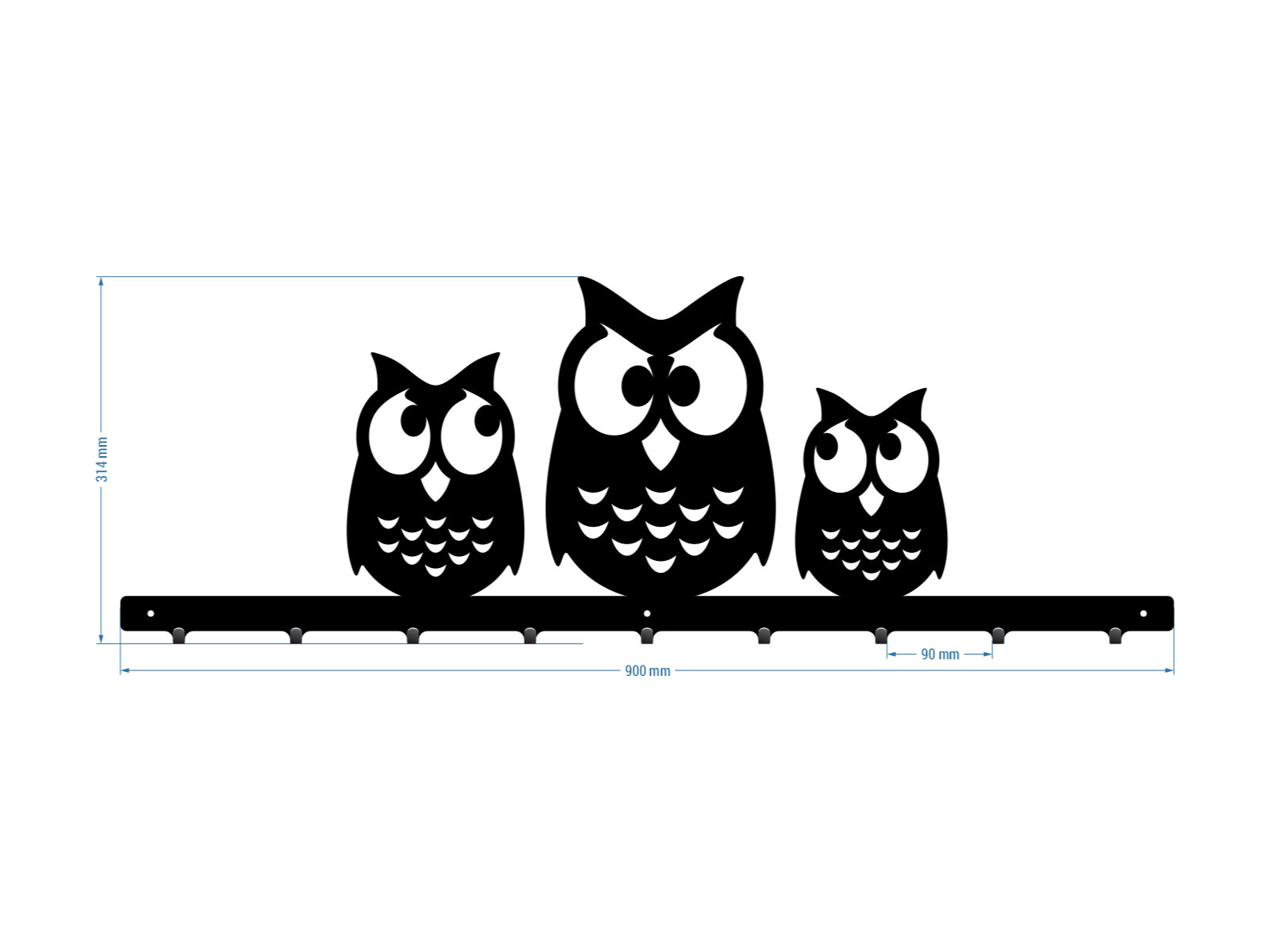 Ozdobny wieszak do przedpokoju z postaciami trzech uroczych sówek. Model ten posiada 9 haczyków na ubrania. Jego całkowita szerokość wynosi 90 centymetrów. Ciekawe wzornictwo z pewnością przyciągnie wzrok każdego!