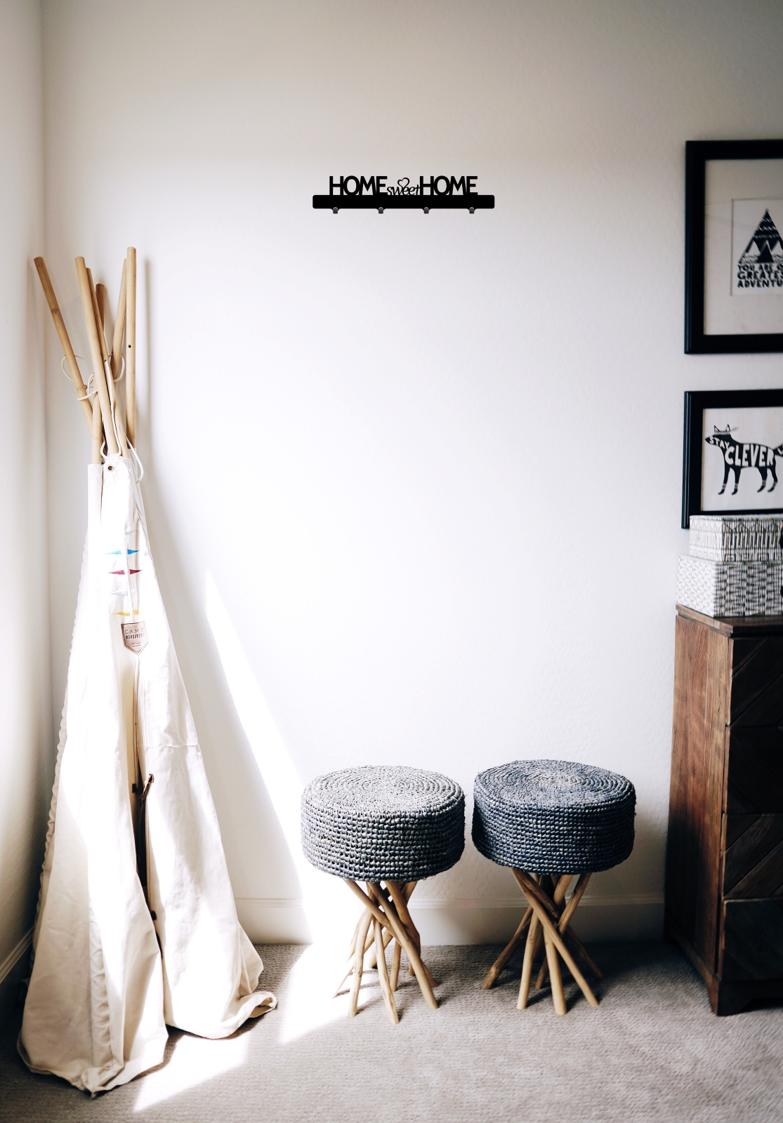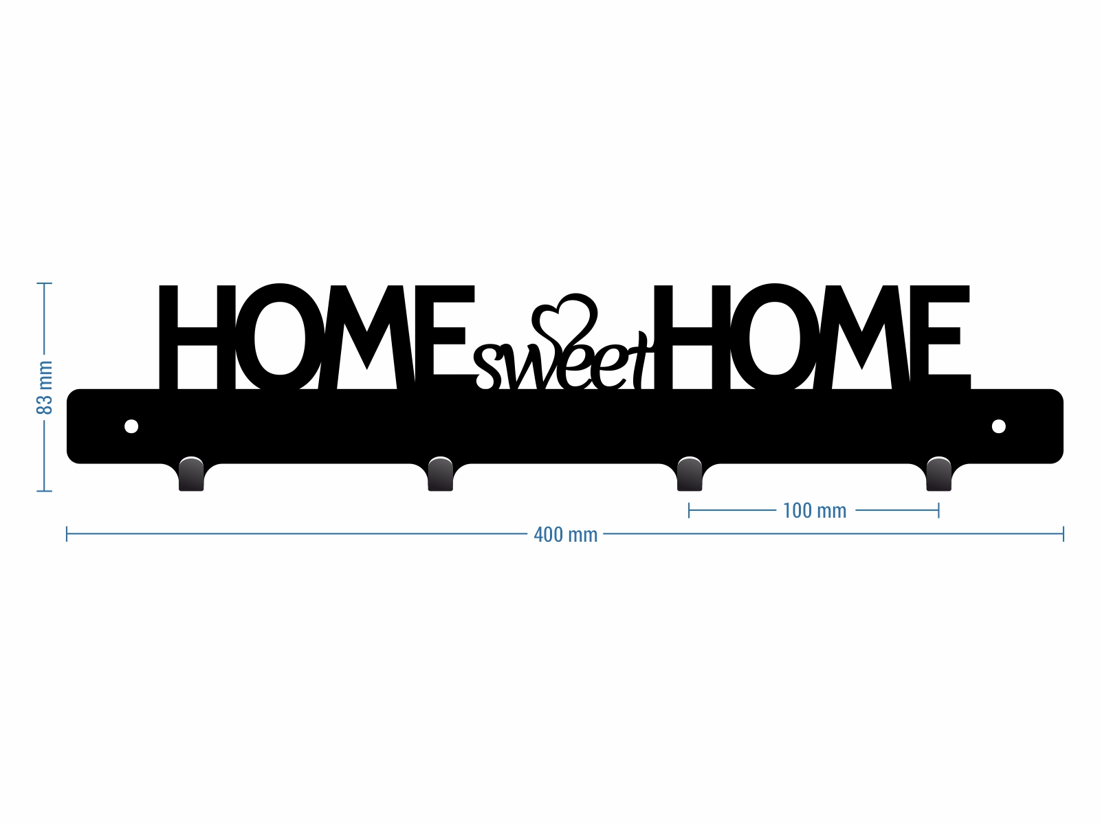 Dekoracyjny ścienny wieszak na kurtki z 4 haczykami na ubrania. Jego całkowita szerokość wynosi 40 centymetrów. Ten krótki model, ozdobiony pięknym napisem ‘Home sweet home” jest idealny nie tylko do przedpokoju!