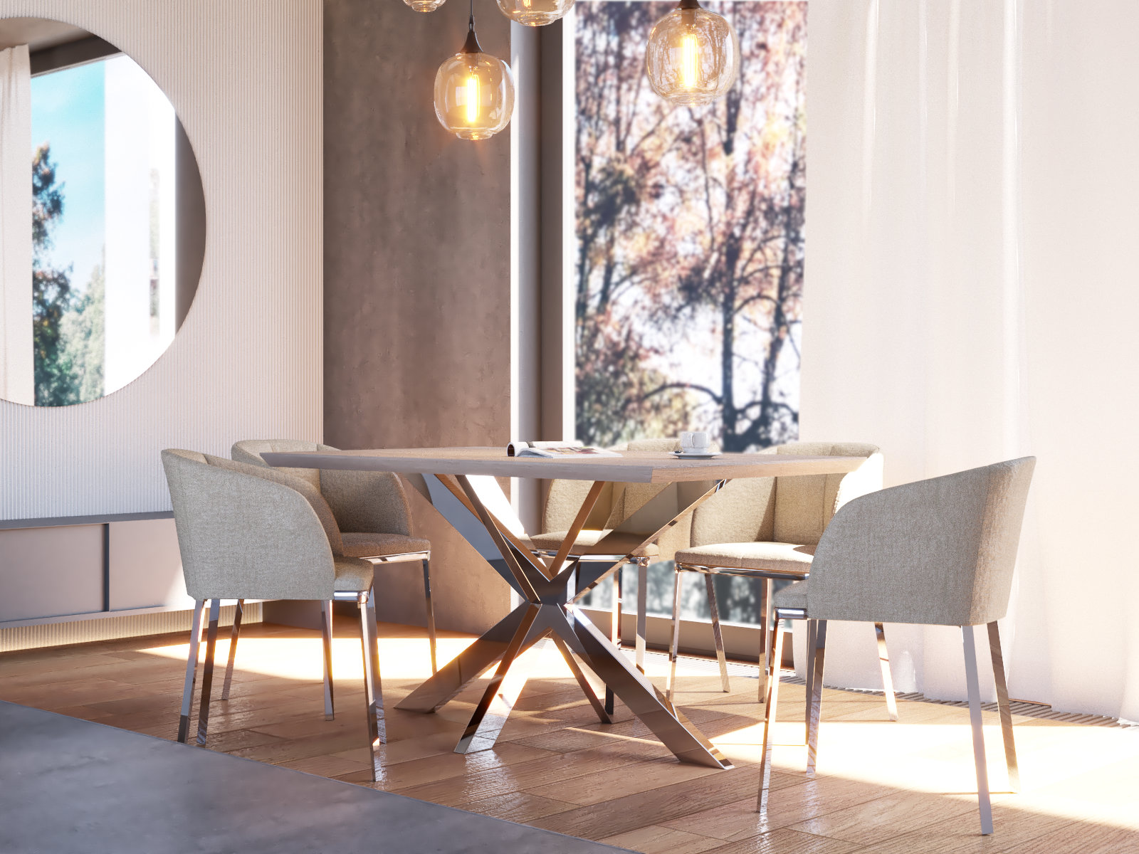 - Spektakularny efekt. Noga do stołu Cross, wykonana ze stali nierdzewnej, sprawia niesamowite, futurystyczne wrażenie. Co więcej, dzięki chromowanej powłoce podstawa przepięknie i widowiskowo odbija promienie światła. Nikt nie przejdzie obok niej obojętnie!