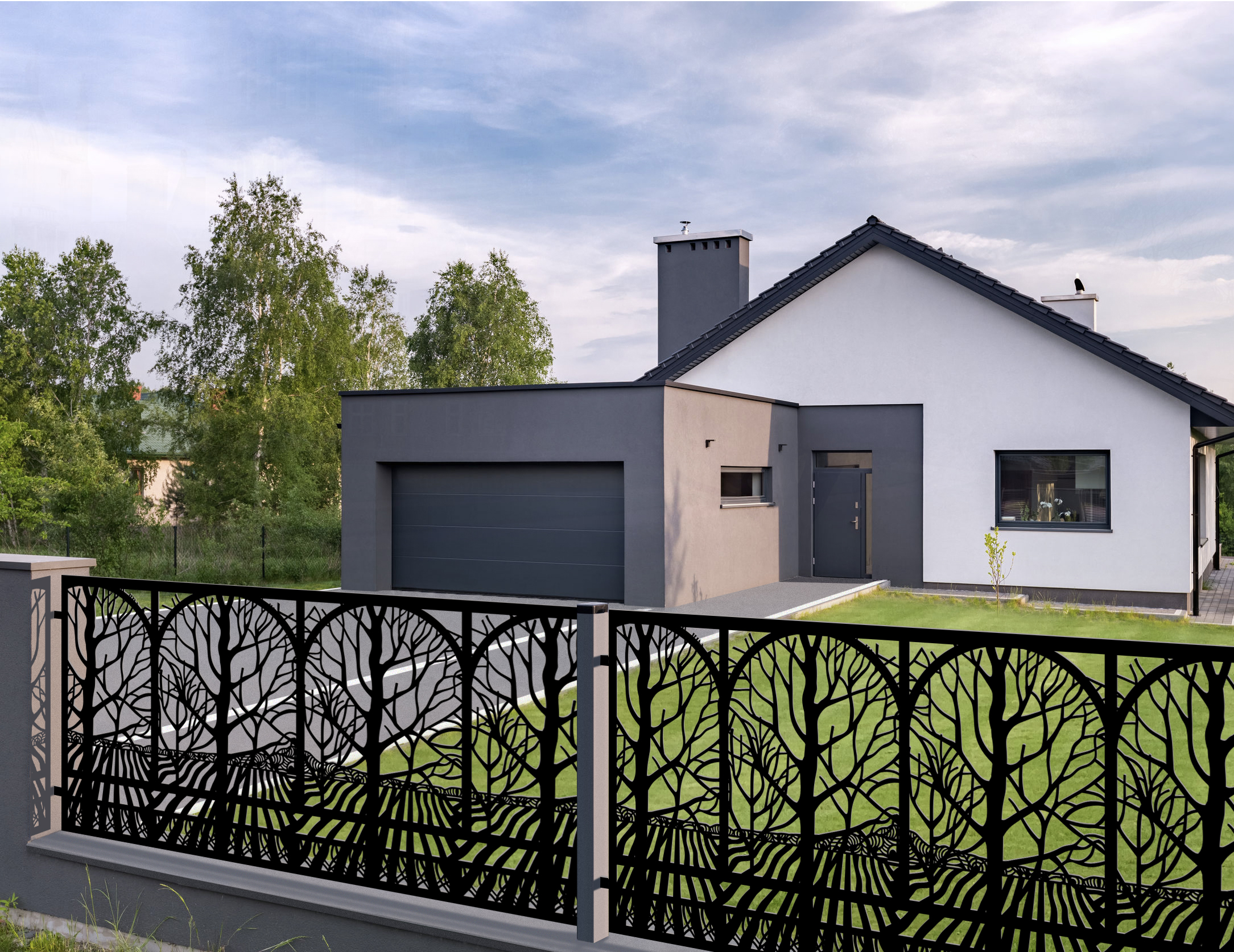 Original și impresionant panou de gard tăiat cu laser. Soluție modernă și ușor de instalat pentru împrejmuirea casei sau a firmei dumneavoastră. Panourile noastre pot fi utilizate în principal ca porți, porți, porți de trecere sau balustrade.