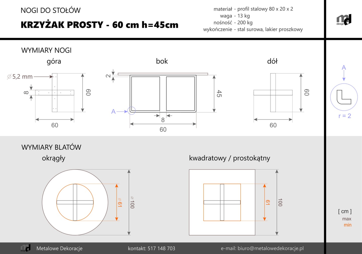 Picior metalic pentru masă de cafea Spider Heavy sub blatul de sticlă L