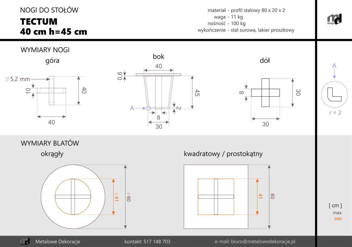 Picior metalic pentru masă de cafea Mediolan sub blatul din sticlă M