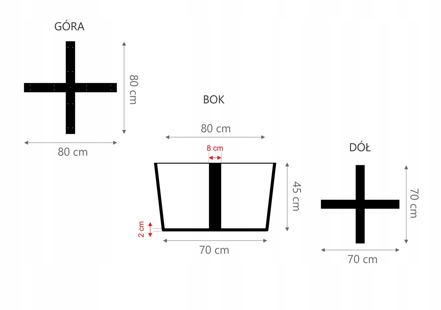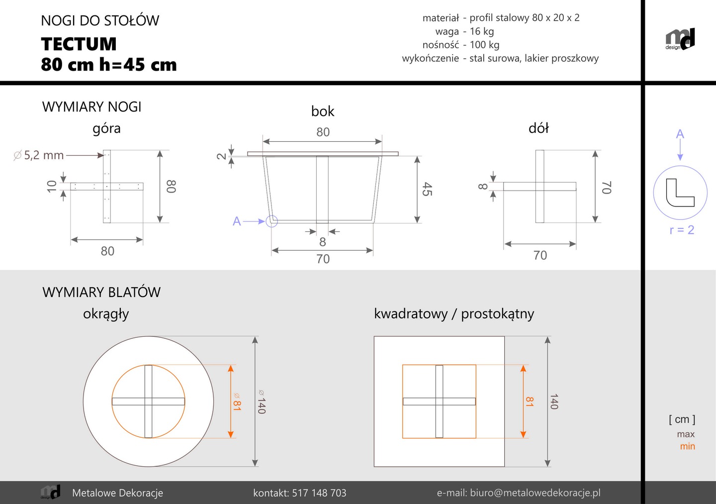Picior metalic pentru masă de cafea Mediolan sub blatul din sticlă L