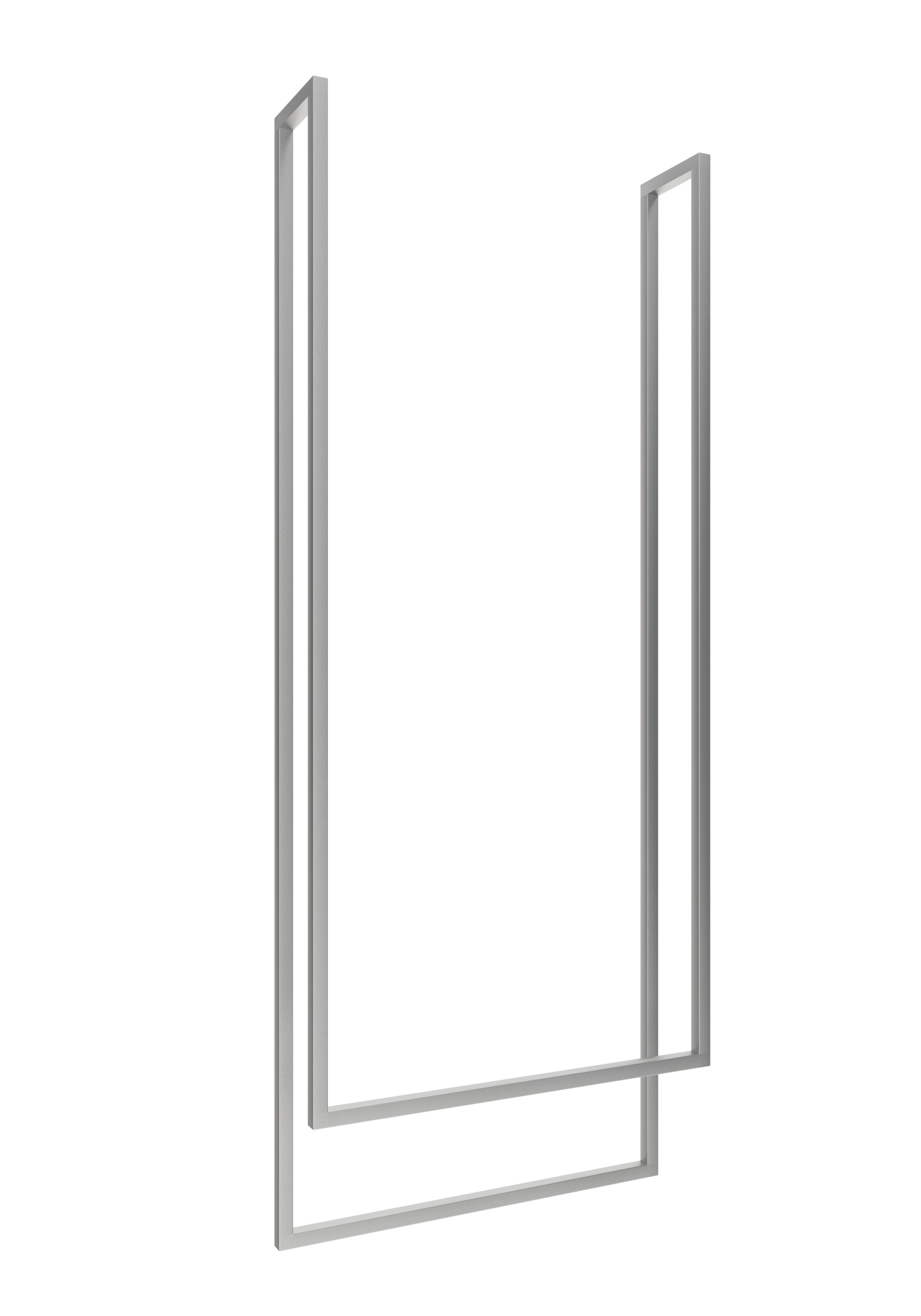 Wieszak na ręczniki sufitowy podwójny, ze szlifowanej stali nierdzewnej. Mierzy 120 cm wysokości, 60 cm szerokości i 15 cm głębokości.