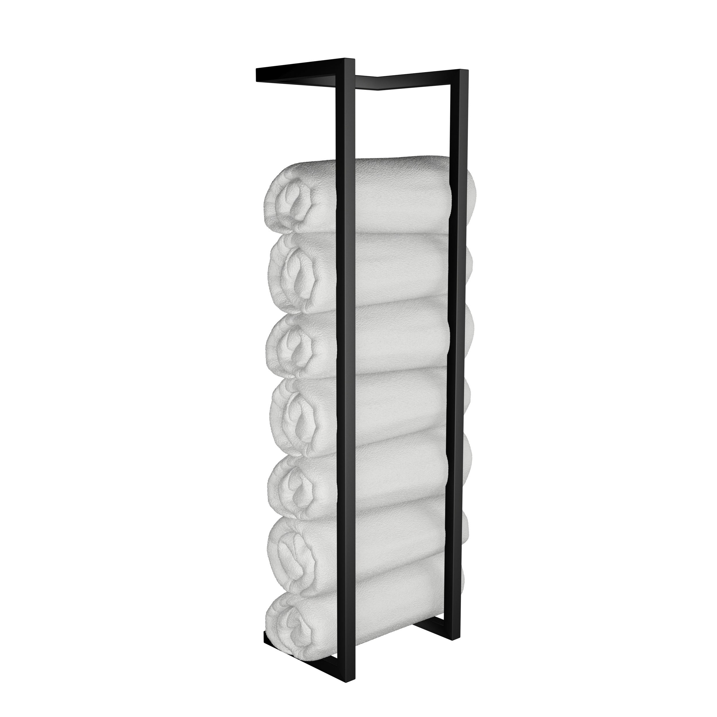 Loftowy wieszak ścienny na ręczniki o wysokości 90 cm, szerokości 25 cm oraz głębokości 20 cm. Idealny do przechowywania zapasu ręczników.
