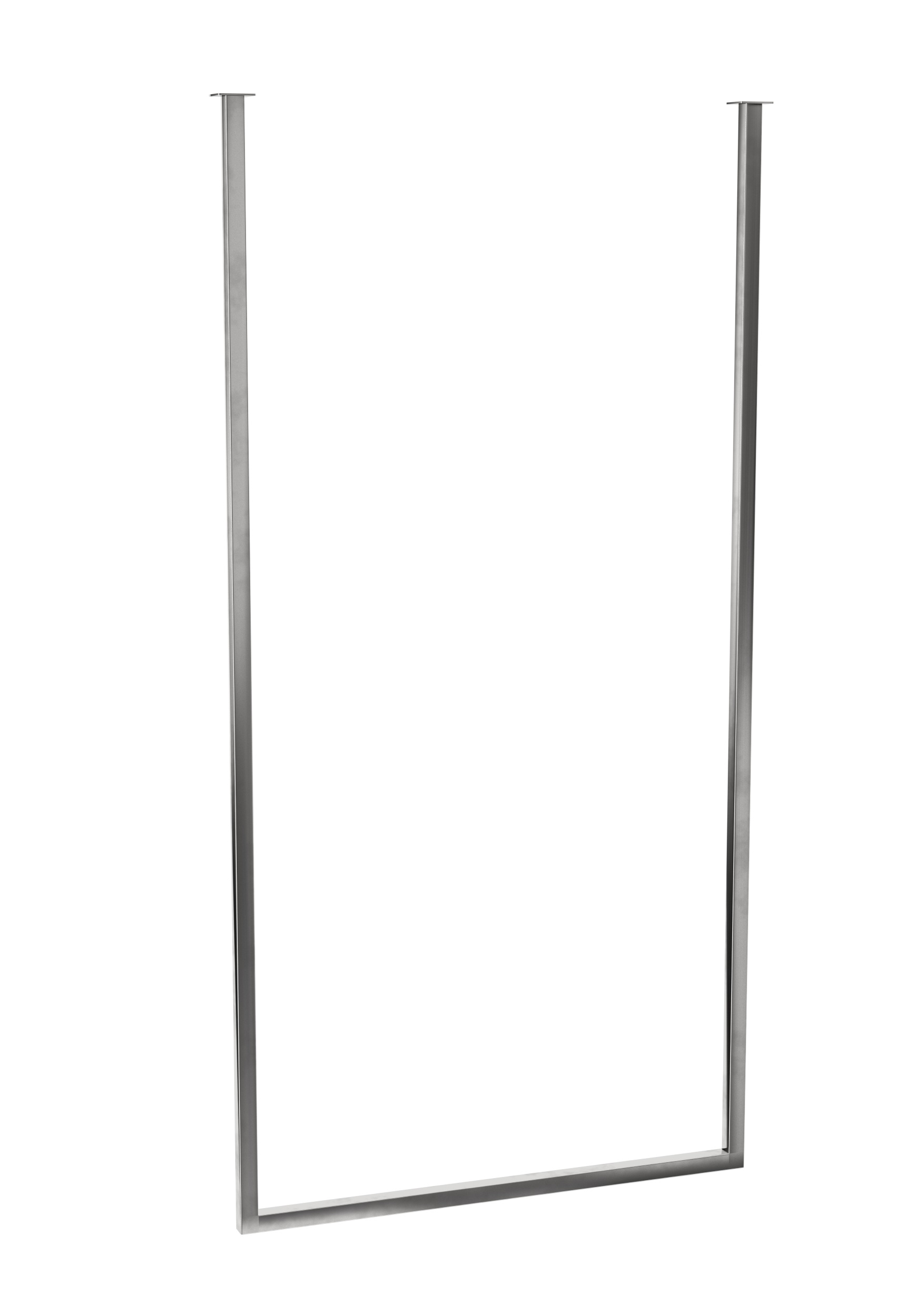 Nowoczesny wieszak sufitowy pojedynczy chrom, wykonany z polerowanej stali nierdzewnej. Mierzy 120 cm wysokości i 60 cm szerokości.